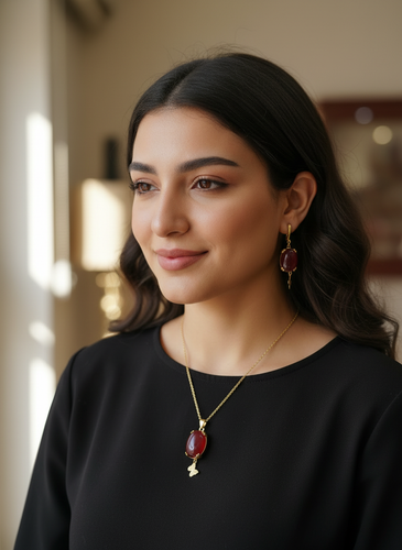 نیم ست زنانه طرح فرعون مصر با قاب نگین دار زیورآلات خاص و تاریخی