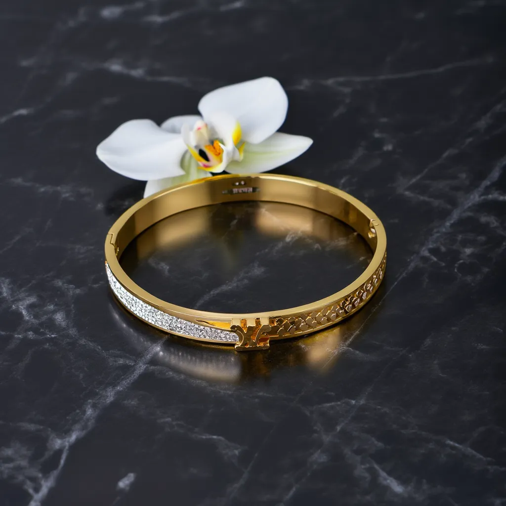 دستبند النگویی زنانه طرح طلا نگین دار LV