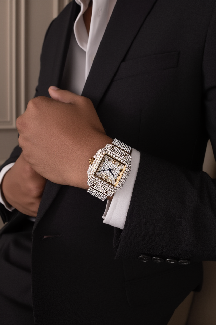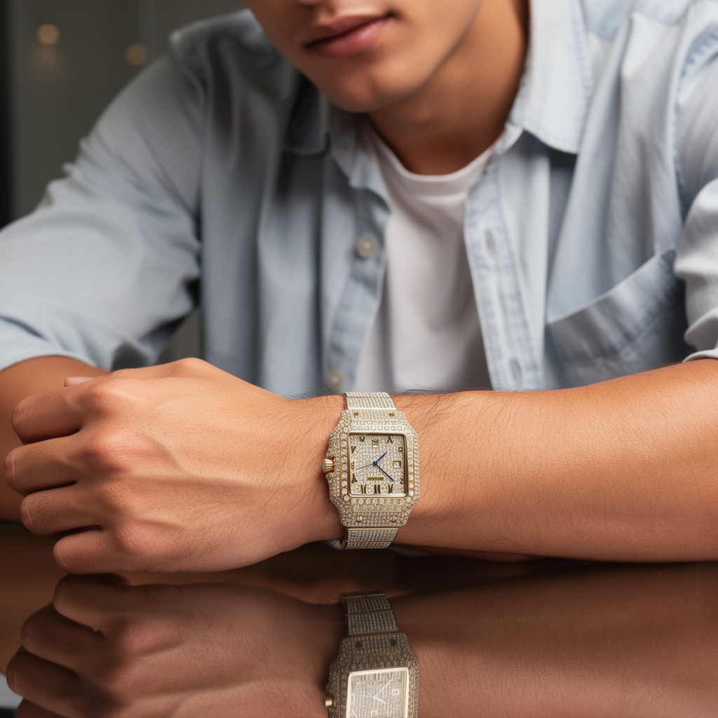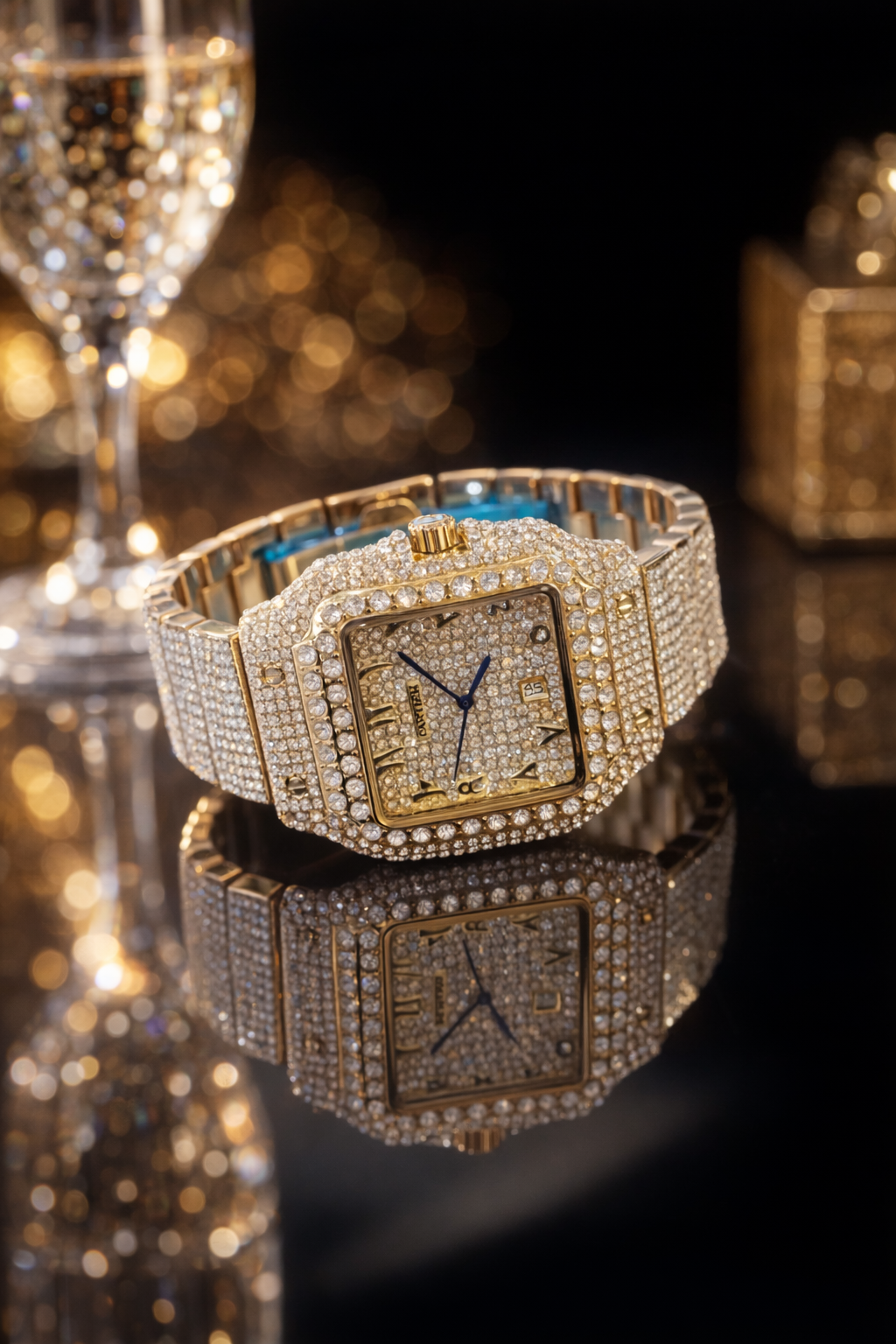 ساعت مچی مردانه فول نگین کارتیر تمام طلایی CARTIER