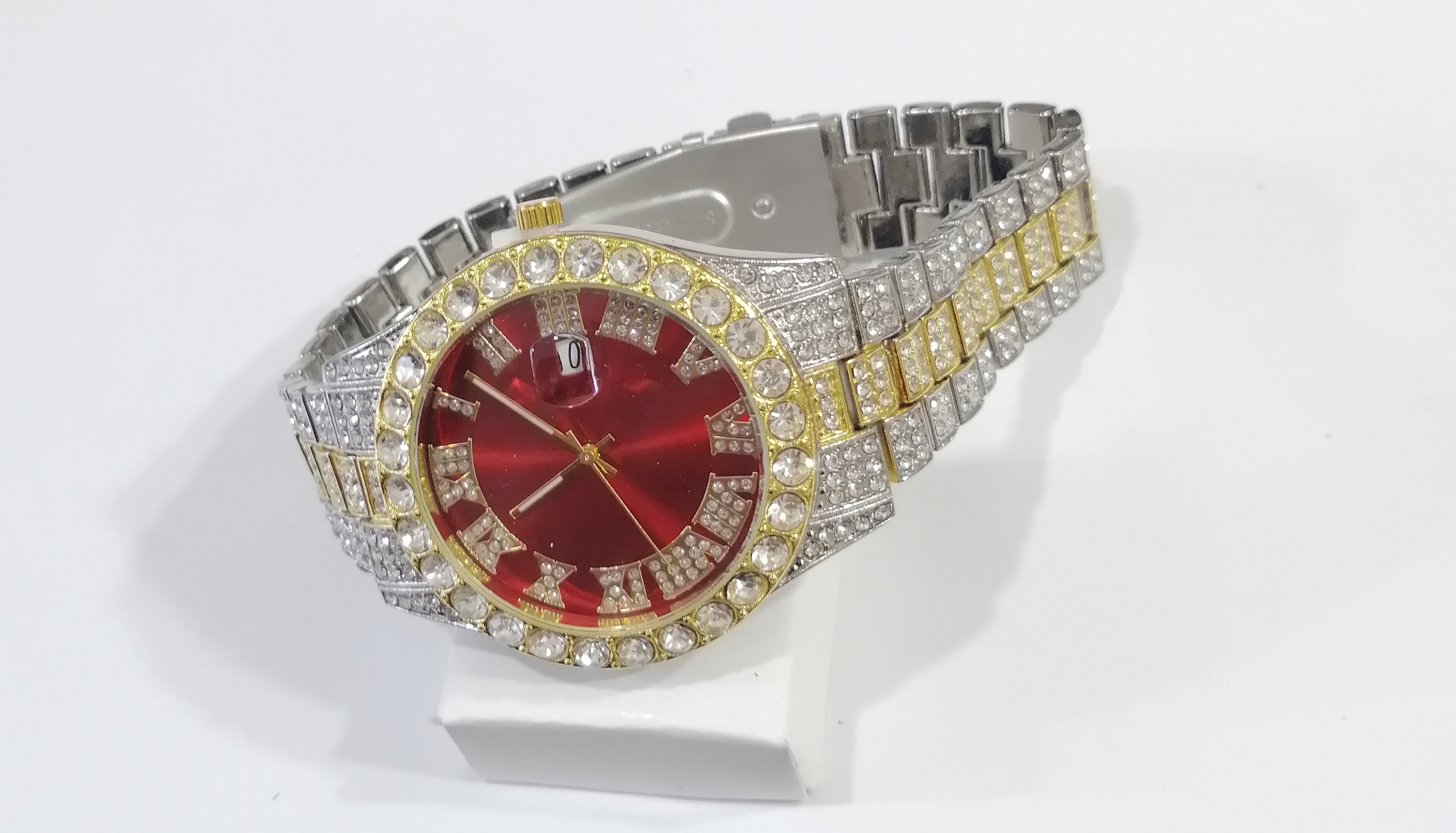 دستهبندی: اکسسوریبرچسبها : ساعت اسپورتساعتساعت لاکچریساعت_شیکساعت فول نگینساعت_ارزانساعت مچیرنگ بند: طلایی نقره ای دورنگرنگ صفحه: قرمز آبی طلایی سبز