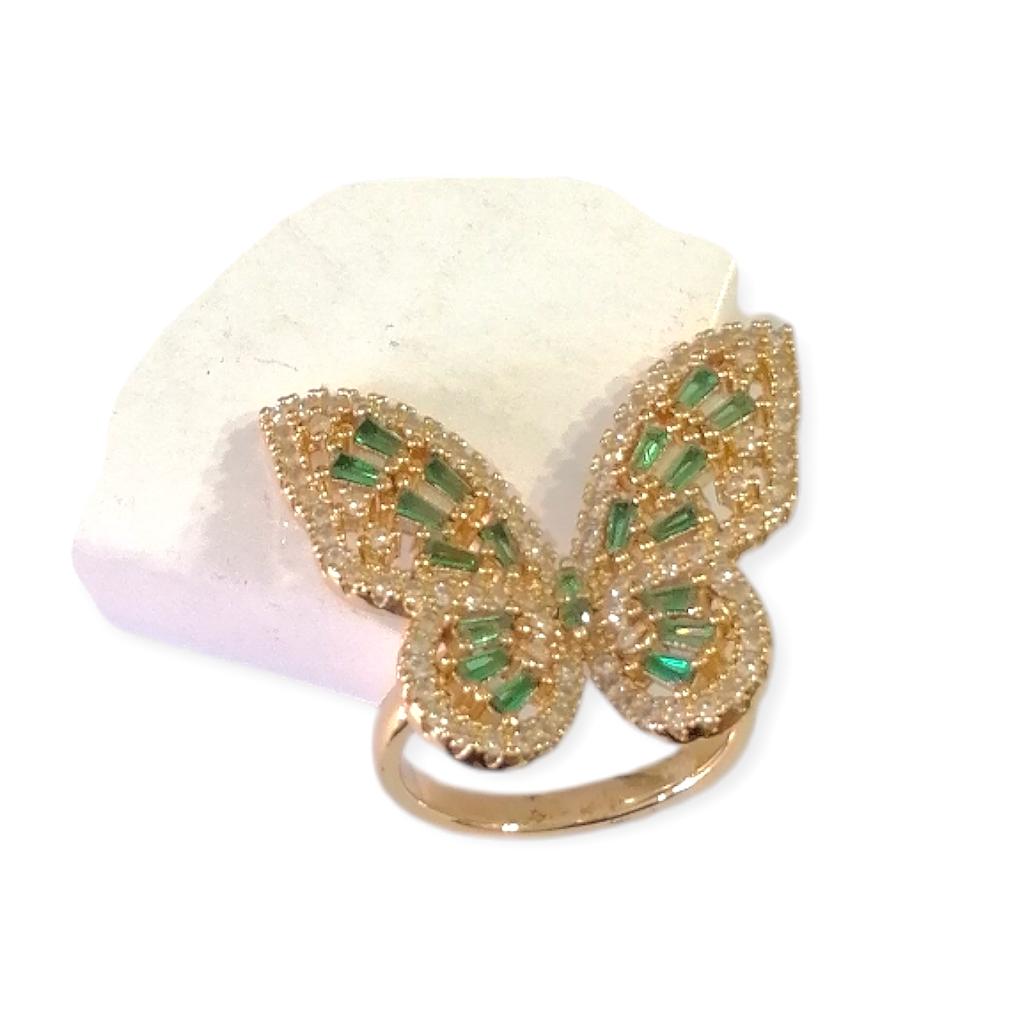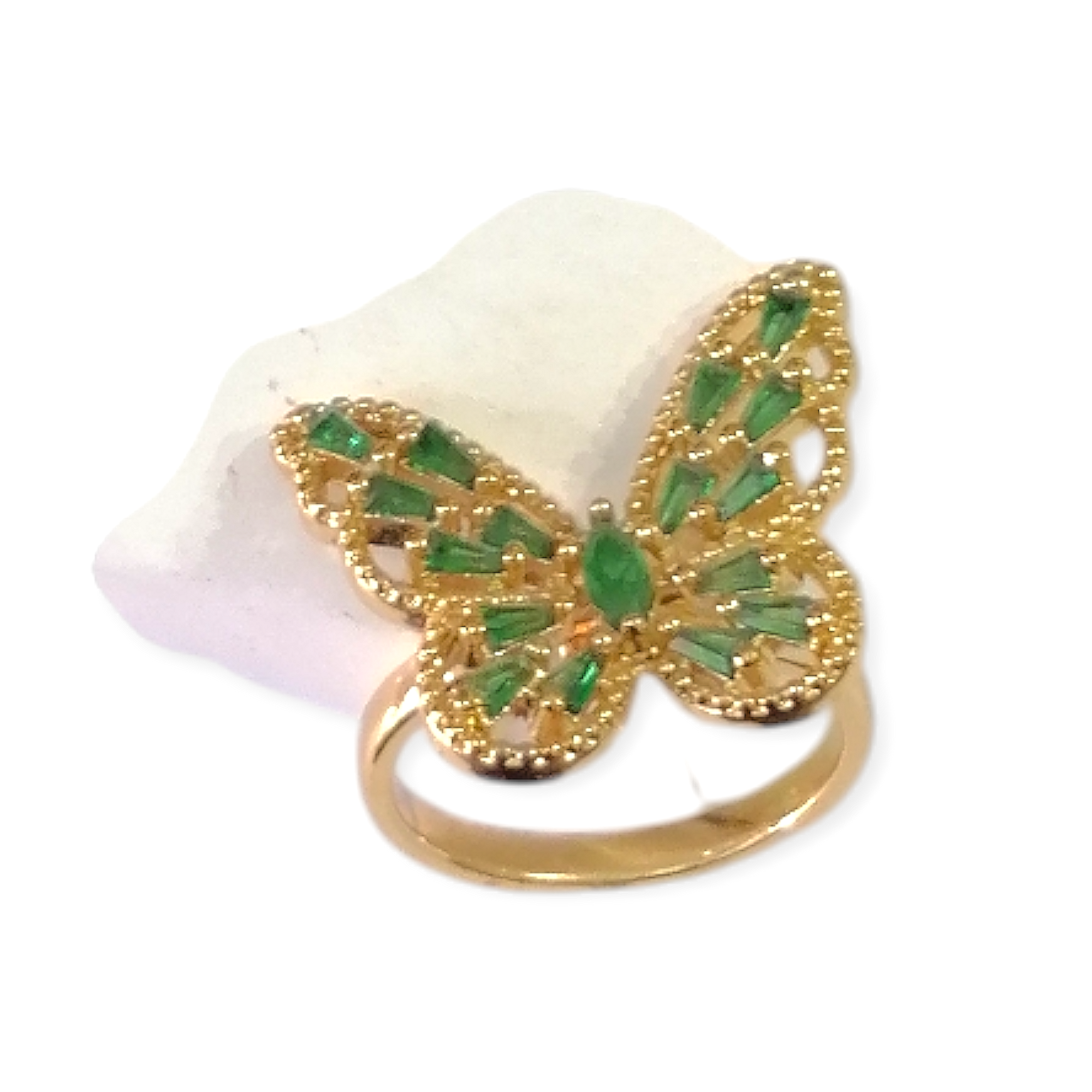 انگشتر مدل پروانه فول نگین سبز