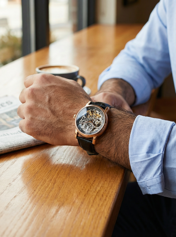 کیفیت A+++ موتور تحت لیسانس سوئیس قطر صفحه 44 میلیمتر نوع کاکرد موتور اتوماتیک جنس قاب استیل 316 جنس بند چرم جنس قفل استیل نوع قفل کلیپسی نوع شیشه سافارین ضد خش تقویم ندارد ضدآب در حد شستن دست و صورت ویژگی ساعت دو زمانه نشانگر 24ساعت شبانه روز به صورت شکل ماه و خورشید