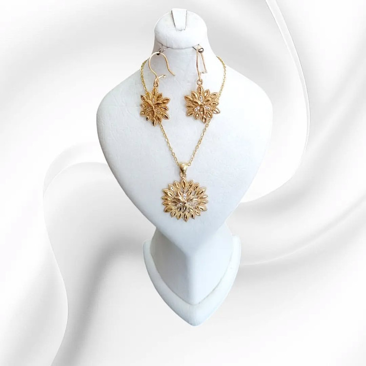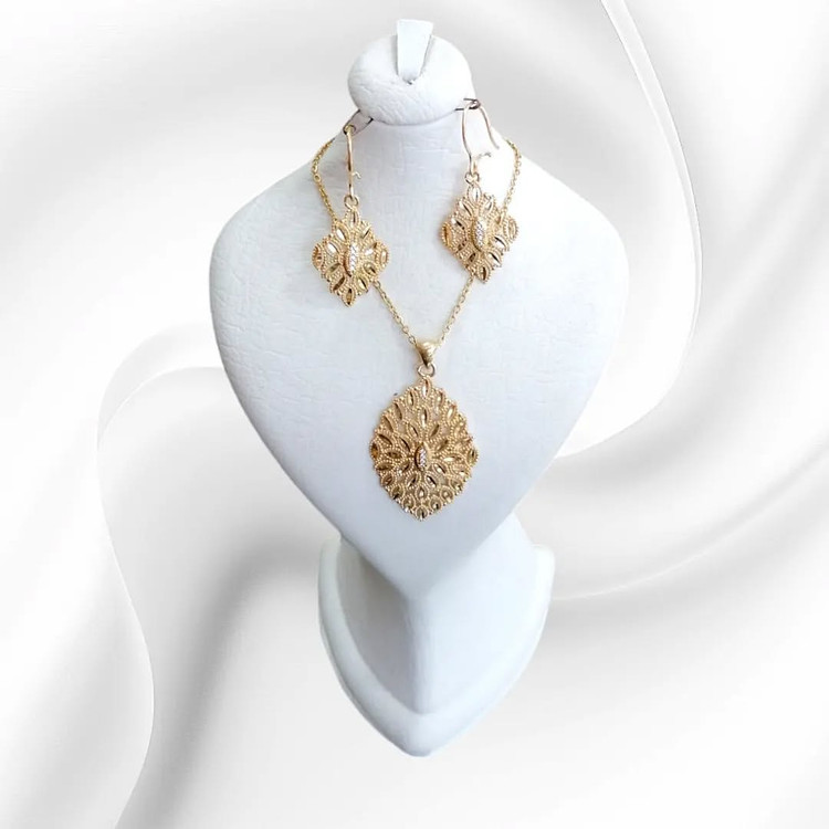 نیم ست زنانه طرح طلا جنس طلاروس رنگ ثابت بدون حساسیت با ظاهری شیک و جذاب