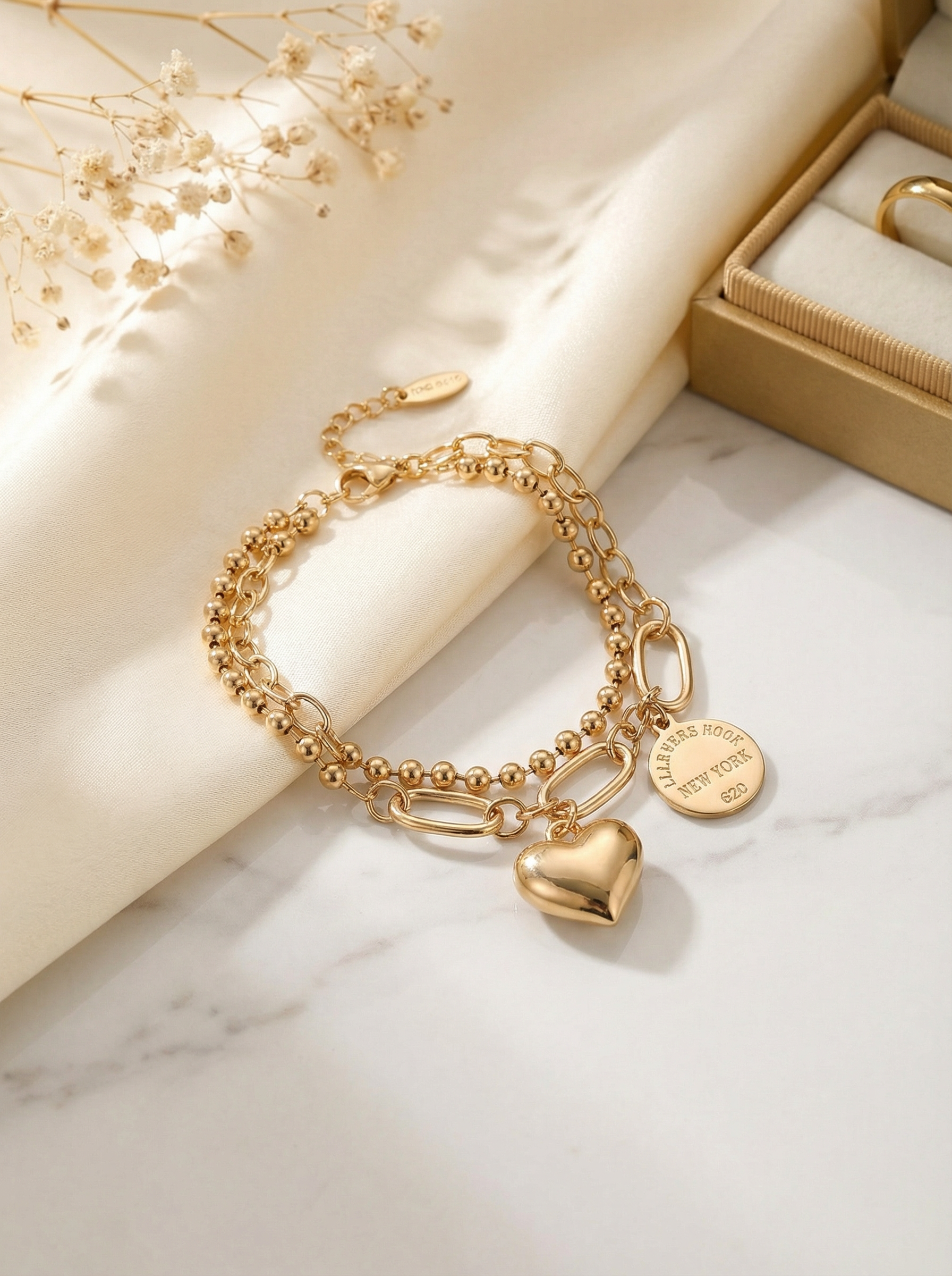 خرید دستبند النگویی زنانه طرح طلا مدل قلب از برند ژوپینگ XUPING